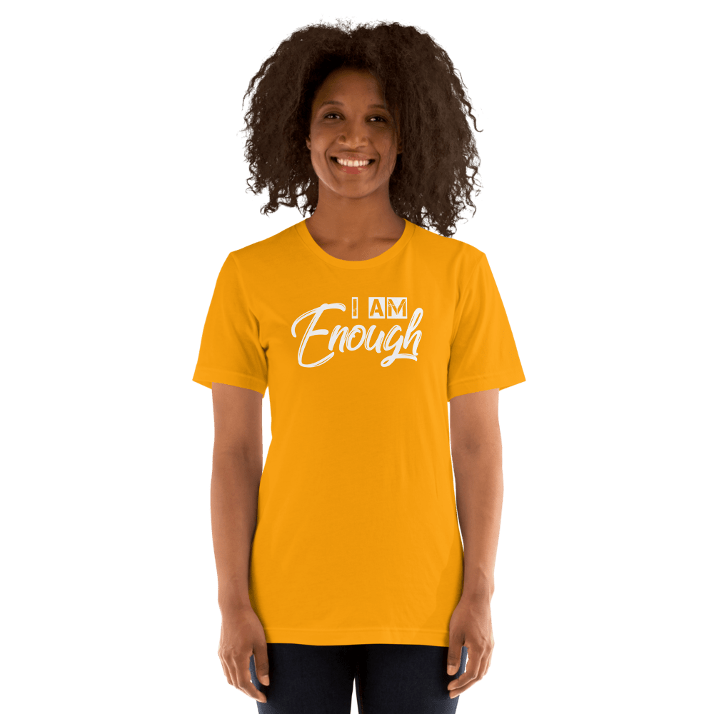 The “I AM Enough” T-Shirt is a bold statement of self-confidence and empowerment. Made from soft cotton, this T-shirt features eye-catching lettering reminding you that you are enough just as you are. Available in various sizes and colors, it’s a perfect gift for yourself or someone you love. Celebrate your worth and let the world know, “I AM Enough!”
